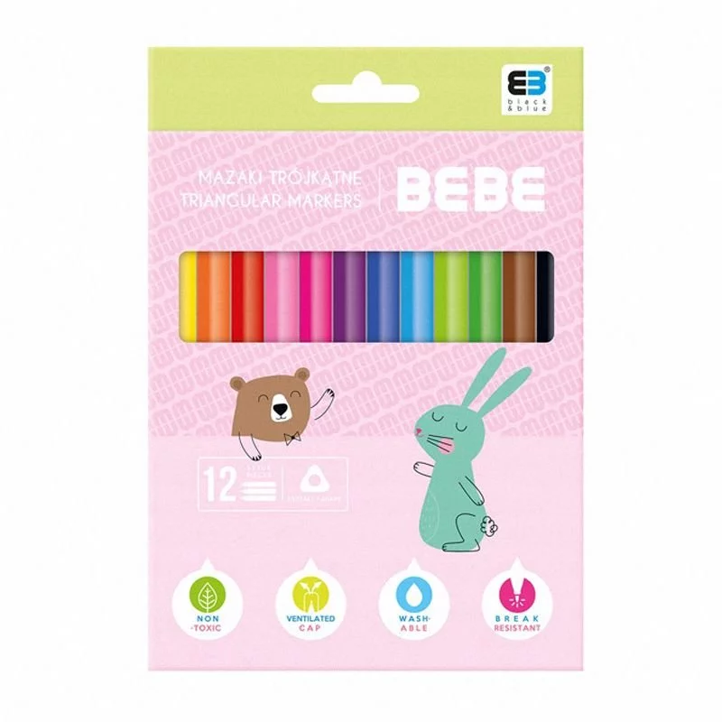 - flamastry szkolne o przekroju trójkątnym w 12 żywych kolorach