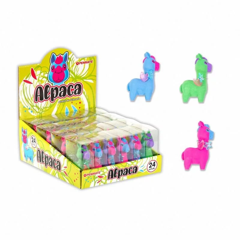 Kolorowe gumki do ścierania w kształcie alpaki.