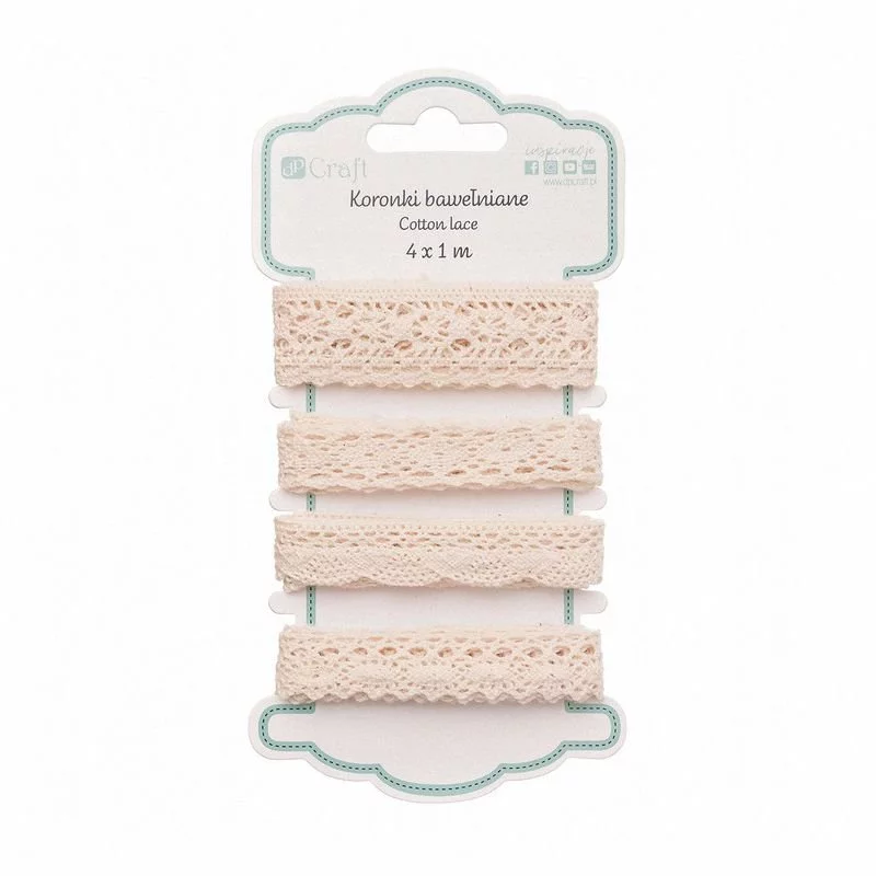 - Wysokiej jakości koronki bawełniane, aż 4 wzory, każdy 1 metr długości! Idealne do wszelkich projektów typu home decor, pakowanie prezentów, scrapbooking, cardmaking, jako dodatek do ozdób do włosów i wielu innych.