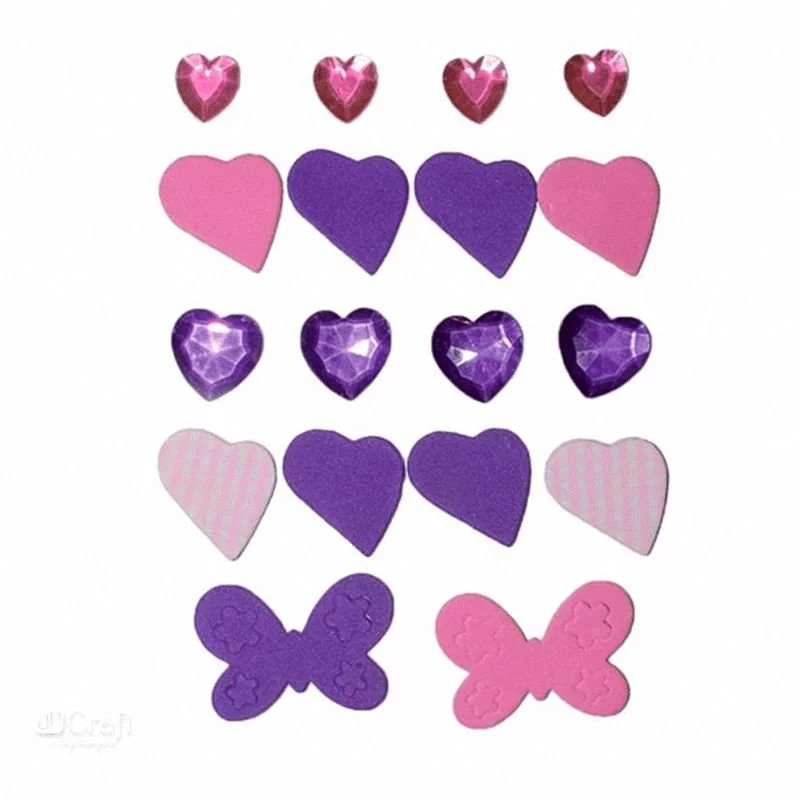 Naklejki z Pianki i Kryształki Serca, Motyle 18szt. /DpCraft