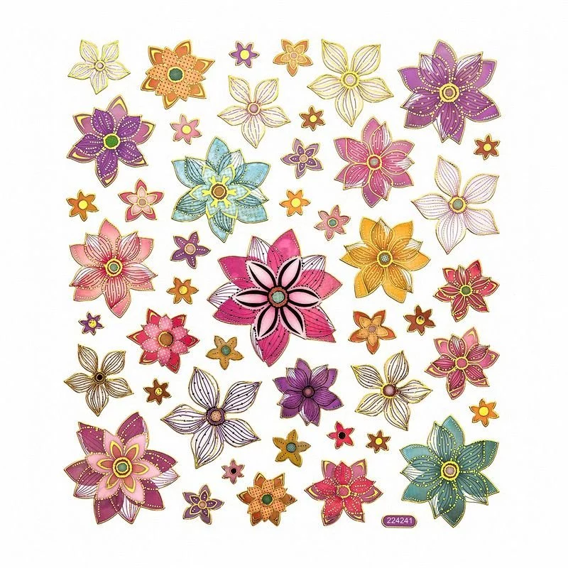 Arkusz kolorowych naklejek z motywem kolorowych kwiatów.Doskonałe do zdobienia projektów scrapbookingowych,kartek okolicznościowych, pakowania prezentów, a także do wszelkiego rodzaju dziecięcej aktywności twórczej.