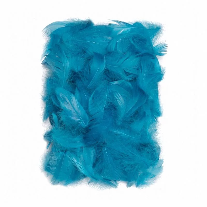 Turkusowe piórka dekoracyjne wysokiej jakości świetnie uzupełnią kreatywne dekoracje oraz prace typu scrapbooking i cardmaking.
