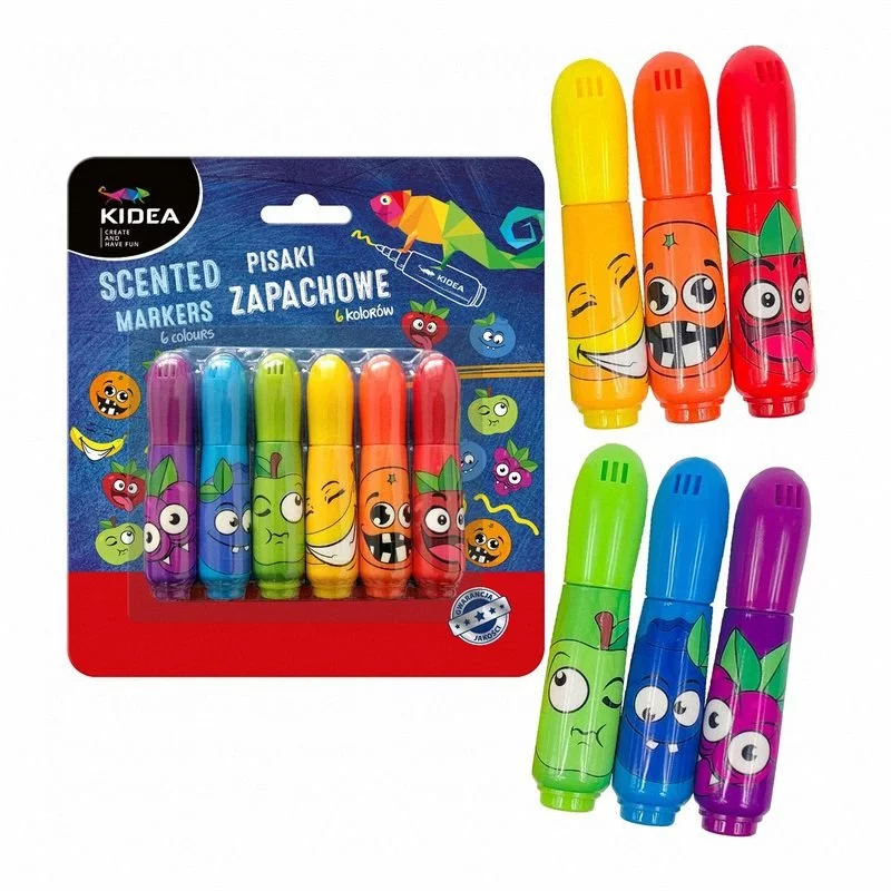Wyjątkowe pisaki zapachowe marki KIDEA. Ich wyjątkowy kształt, sprawia że idealnie dopasowują się do dłoni. Zgrabne wymiary sprawiają, że zmieszczą się do każdego piórnika. Ponadto, są niełamliwe i mają bardzo wytrzymałą końcówkę. Posiada bardzo soczyste kolory, które doskonale kryją powierzchnię.