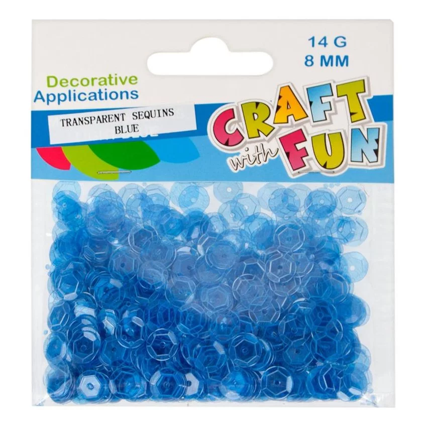 Zalety produktów: można zaprojektować własne ozdoby lub dekoracje, idealne do wykonywania wszelkich prac dekoratorskich, jak również do zabaw plastycznych, do wzbogacenia ozdób wykonanych techniką decoupage. Używaj tych produktów w połączeniu z innymi akcesoriami oraz kompletami z serii CRAFT WITH FUN! Zawartość opakowania: transparentne, okrągłe cekiny w niebieskim kolorze o średnicy 8 mm. W opakowaniu znajduję się 14 g. cekinów. Cekiny wykonane z plastiku. Wymiary/waga: wymiary opakowania (dł. x wys. x gł.) [cm]: 10x12x1, waga produktu w opakowaniu [kg]: 0,04 kg. Produkt przeznaczony dla dzieci w wieku: 3+. Pakowany w woreczek z zawieszką. W inerze po 40 szt. W kartonie zbiorczym po 400 szt.