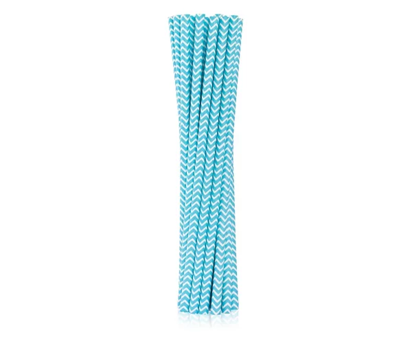 Rurki (słomki) pap. jasnoniebieskie szlaczki, 6x197mm / 12 szt. /GoDan