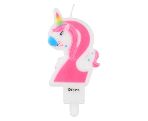 Świeczka cyferka 2, z Jednorożcem, 7,8 cm /GoDan